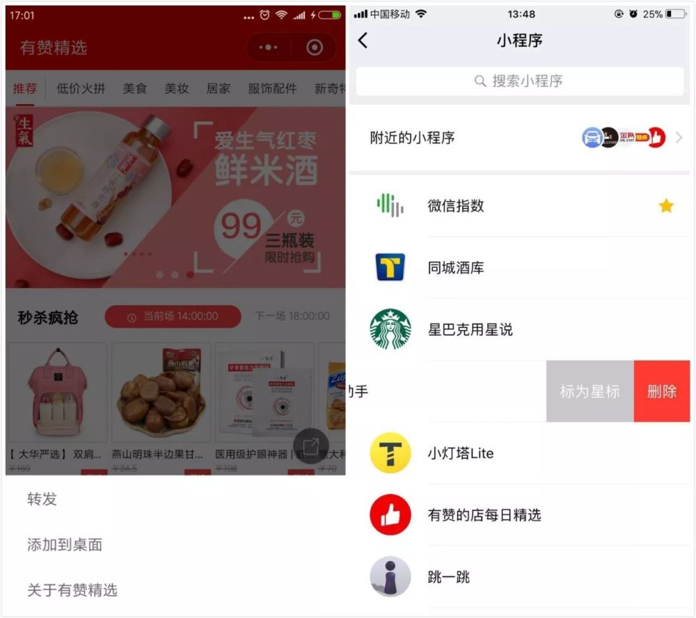 如果是H5類型的商城,關閉后,下次打開很難找到,通常需要通過訂閱號、服務號的菜單欄去找。而小程序直接在歷史菜單或者微X下拉框中就可以找到,而且也可以保存在手機桌面,路徑大幅度壓縮。